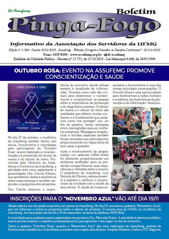 O Boletim Pinga-Fogo, edição 1287, saiu do forno está prontinho para você acompanhar. Você pode lê-lo e baixá-lo logo abaixo. Tem sugestões? Mande para gente através do e-mail: comunicacao@assufemg.org.br Caso […]