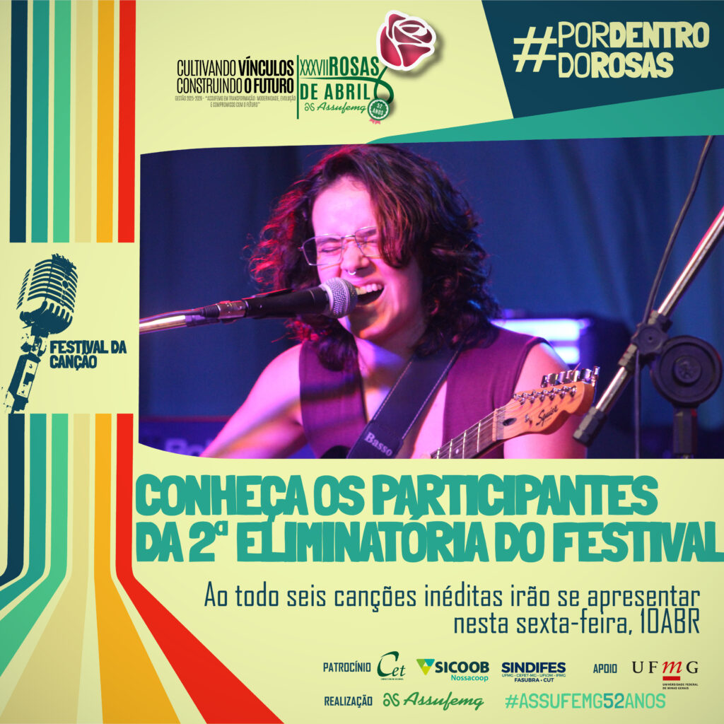 Em continuidade à programação do XXXVII Rosas de abril, o festival se consolida como vitrine para a produção musical universitária, incentivando a criatividade e valorizando novos artistas. Com entrada gratuita, o evento contará com toda a estrutura e o ambiente acolhedor da Assufemg — além das opções da Cantina Pelego’s, que funcionará durante a programação.