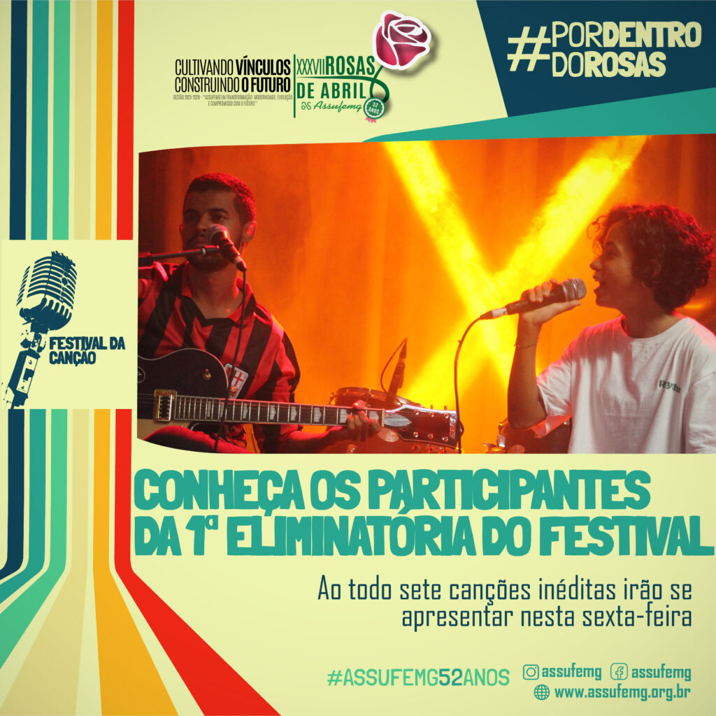 Integrando a programação do XXXVII Rosas de Abril 2026, o festival é uma vitrine para a produção musical universitária, incentivando a criatividade e valorizando novos artistas. Com entrada gratuita, o evento contará com toda a estrutura e o ambiente acolhedor da Assufemg — além das opções da Cantina Pelego’s, que funcionará durante a programação.