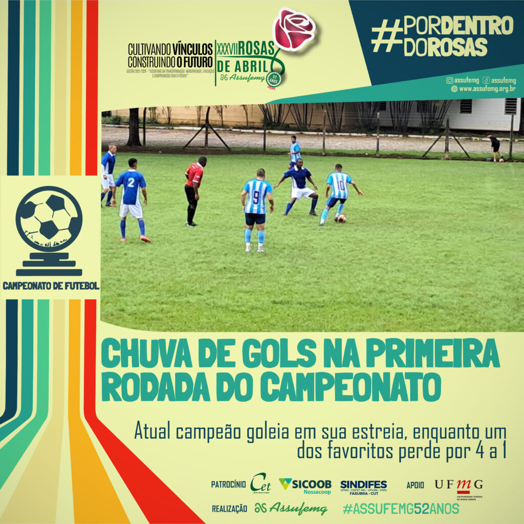 O Campeonato de Futebol de Campo do XXXVII Rosas de Abril começou com muitos gols e partidas movimentadas na manhã deste sábado, 14 de março, no campo da Assufemg. Dois jogos abriram a competição e já movimentaram a tabela da fase classificatória.